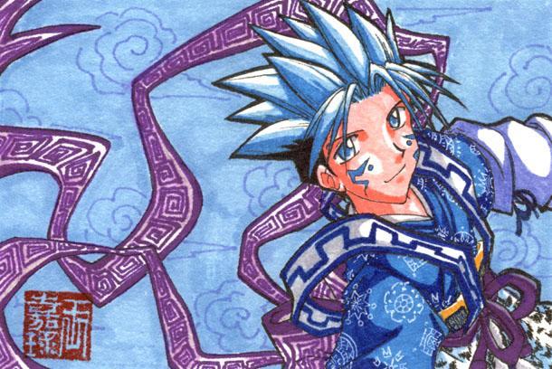 Posted: 10-11-02 Medium: Prismamarkers. Comments: This was drawn on a postcard that the markers didn't get along with so the colors look a little scratchy. I made up an AU costume for him. Too blue perhaps? Can you tell it's HoroHoro? It doesn't really look like him... -__-;; I think it came out nice though. |