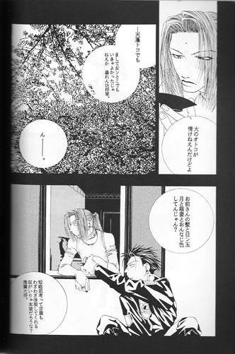 Hakkai getting on Sanzo's case about a wound (I think). The other story has them