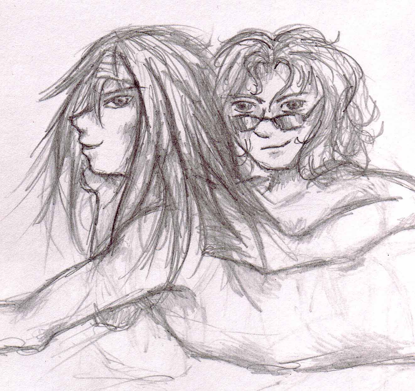 Little pencil sketch I did after being introduced to the wonders of Yohji/Schu by Aleo's wonderful fic Somthing me in you and sequiles.
